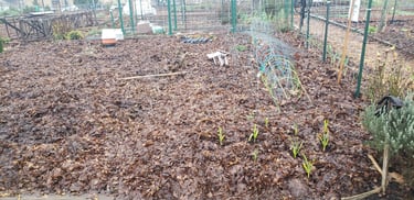 Few months in. Garden does not need daily watering at this stage but weeding is necessary. Woodchips on pathway discourage weed and prevent errosion.