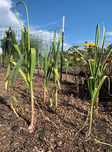 I have equally experimented with planting garlic under the mulch. It worked pretty well. Garlic is resistant to frost and matures early the following spring, serving as a pest control while providing a delicious spice.